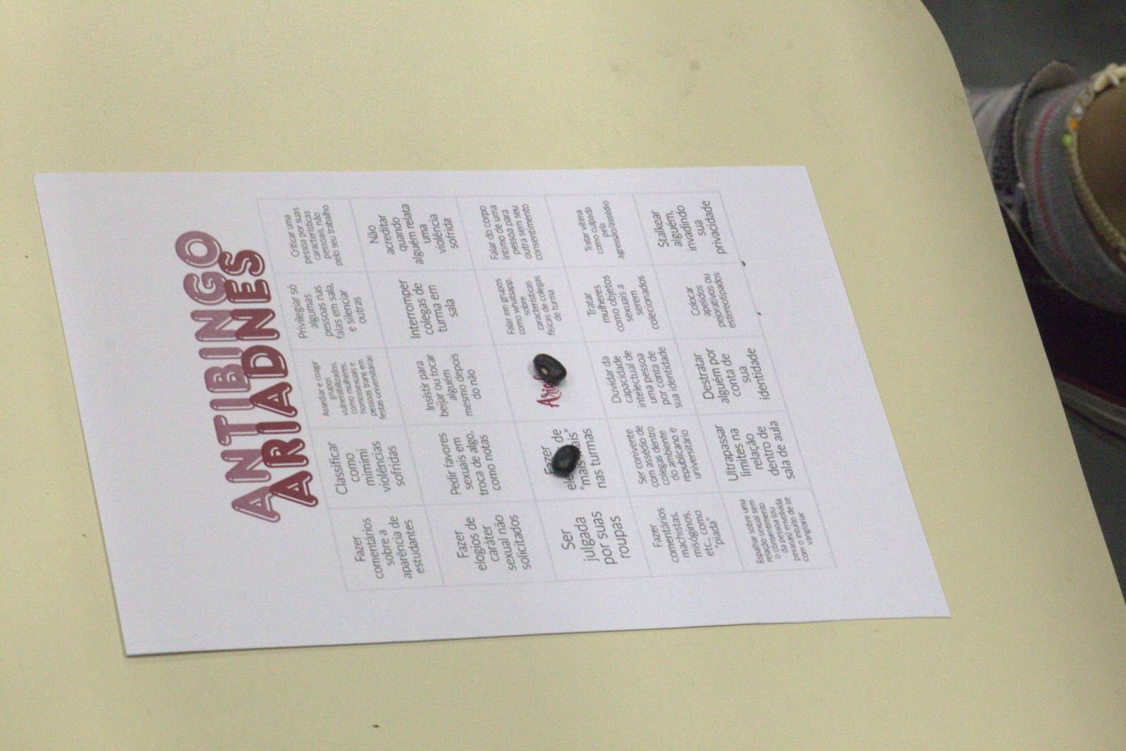 Durante o sorteio são debatidos temas principais entre as frases da cartela, possibilitando a apresentação de assuntos como consentimento, relações de poder e desconforto. Entre as “pedrinhas” do bingo estavam frases como: “Privilegiar só algumas pessoas nas falas em sala, e silenciar outras” e “Falar do corpo íntimo de uma pessoa para outra sem seu consentimento” que iniciam essas discussões.