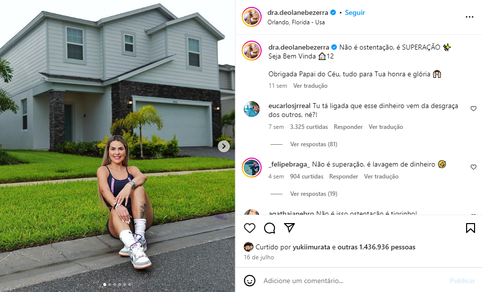 TERRA. Como Deolane Bezerra ficou rica? Saiba qual é o patrimônio estimado da influencer e de onde ele vem. Terra, 04 set. 2024. Disponível em: https://www.terra.com.br/diversao/gente/como-deolane-bezerra-ficou-rica-saiba-qual-e-o-patrimonio-estimado-da-influencer-e-de-onde-ele-vem,50c6e6b24acf4d1c21774a73e97be668cdkezbgd.html. Acesso em: 04 out. 2024.