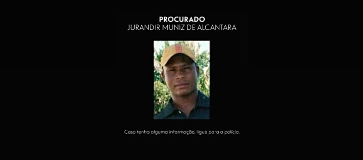 “PROCURADO: Jurandir Muniz de Alcântara”. Abaixo da foto, uma orientação: “Caso tenha alguma informação, ligue para a polícia”.